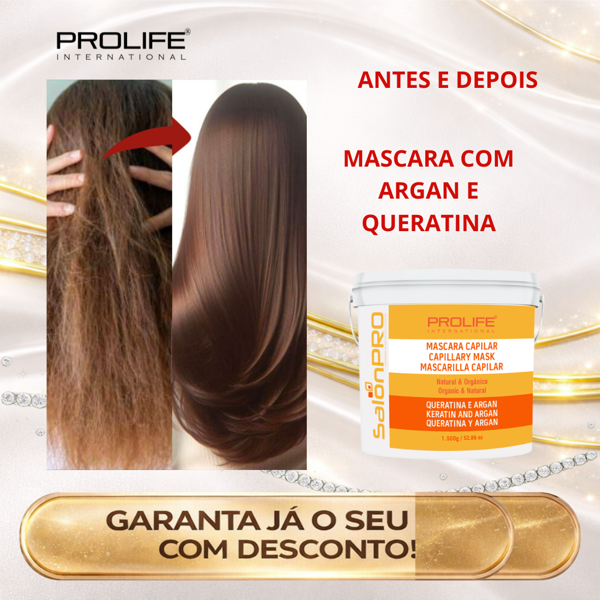 Tags: brilho intenso, cabelos danificados, cabelos quimicamente tratados, controle de frizz, hidratação profunda, máscara capilar profissional, máscara capilar queratina e argan, máscara para salão de beleza, nutrição capilar, óleo de argan capilar, Prolife International, queratina hidrolisada, reconstrução capilar, salon pro, tratamento capilar profissional
